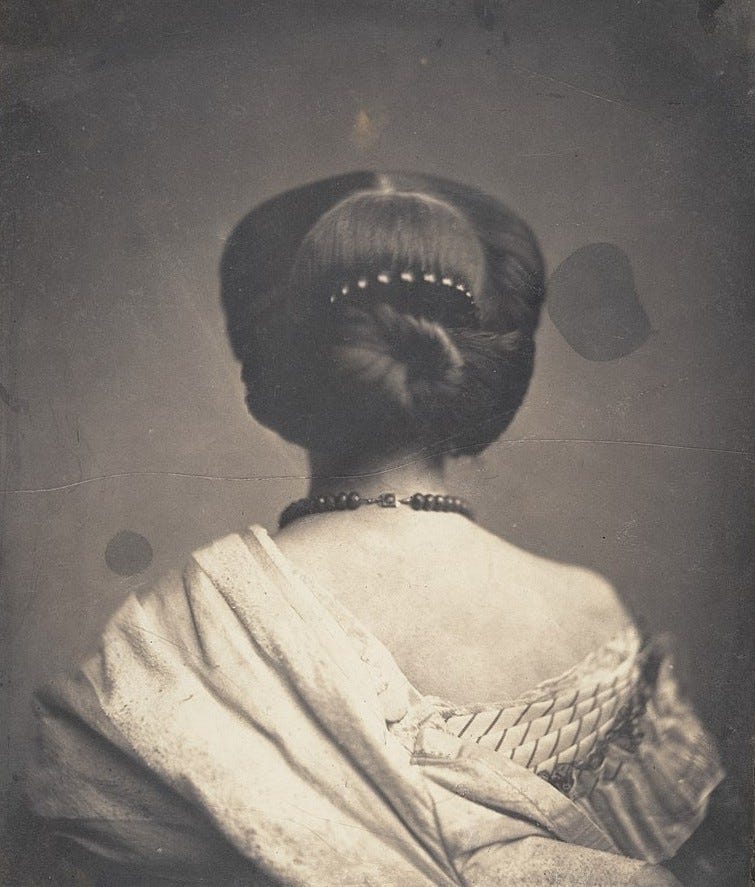 The photograph is Woman Seen from the Back, taken by Vicomte Onesipe Aguado de las Marismas in 1862.